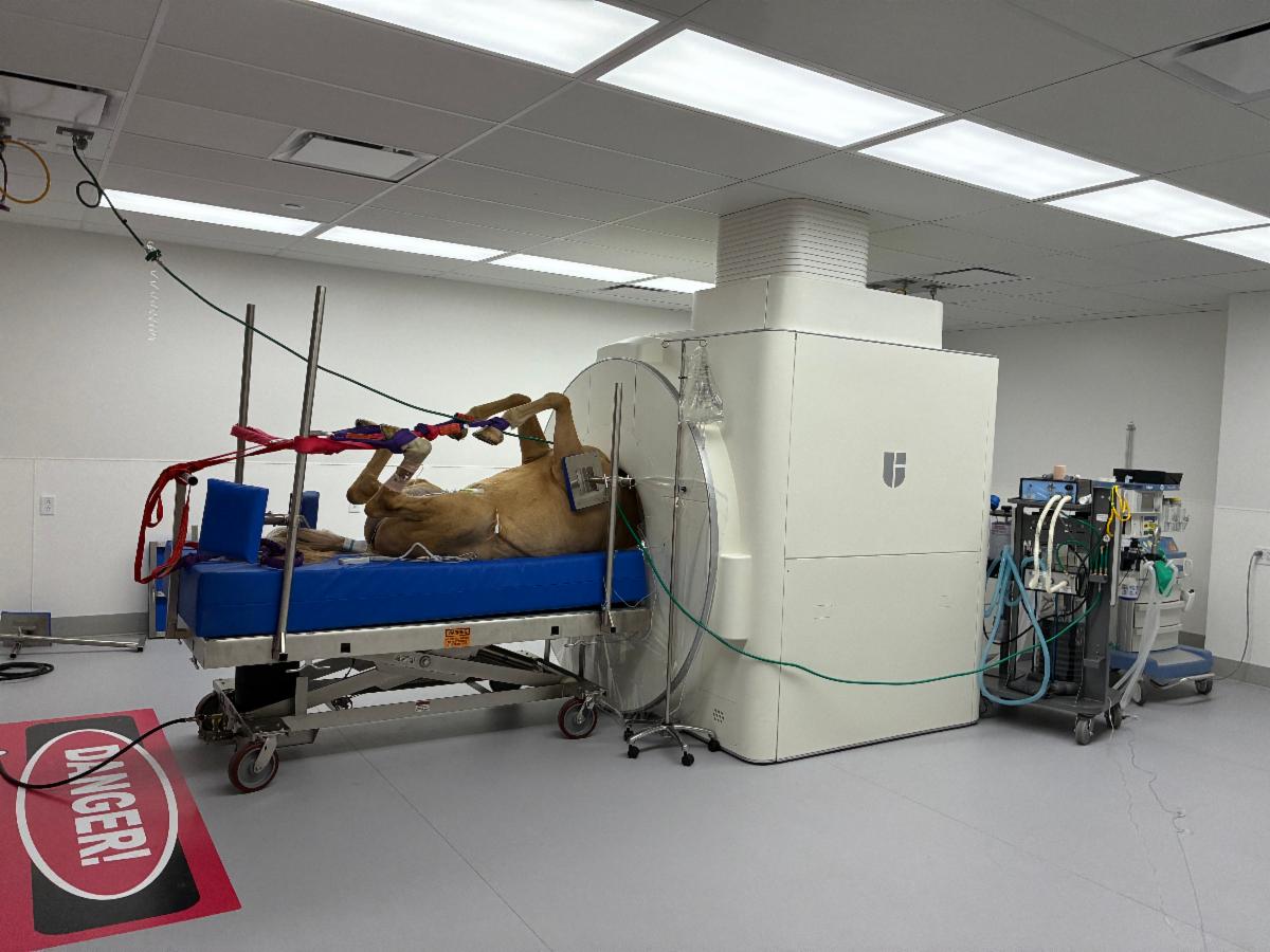 The Veterinary Medical Teaching Hospital has opened the All Species Imaging Center. This central hub for all advanced diagnostic imaging is the realization of leadership vision and philanthropic endeavors over a decade in the making. Thanks to the generosity of many donors, the entire building and two of the new scanners were donor funded. The center’s four diagnostic imaging suites are dedicated to small animal computed tomography (CT), high field magnetic resonance imaging (MRI) for both small and large animals, positron emission tomography (PET)/CT for both small and large animals, and a dedicated large bore equine CT, which is revolutionizing how the hospital diagnoses and treats horses and other large animals.