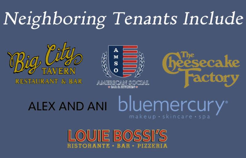 - Perfect for fashion, boutiques, cafés, beauty, athleisure, blow-dry bar, home furnishings, accessories, galleries and specialty fitness facilities including pilates, yoga, spinning etc.