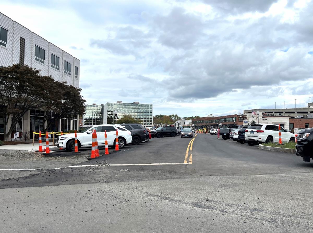 Paving of a temporary top course along the western curbline was installed on Monday, October 13th. Marking of the parking stalls will follow soon after.