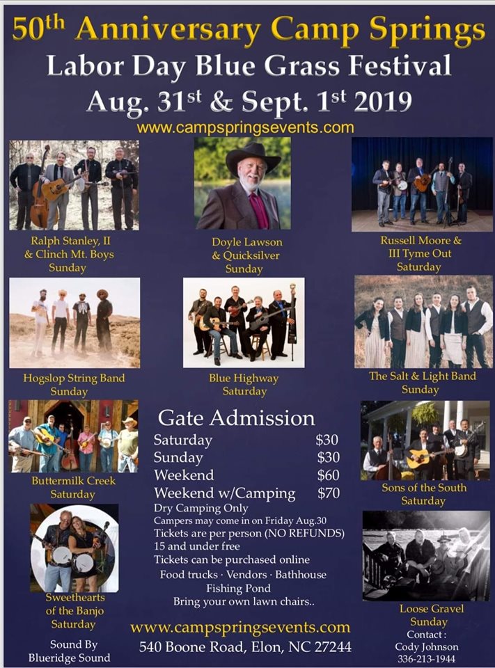 Poster for the 2019 Labor Day Festival at Blue Grass Park in Camp Springs, NC