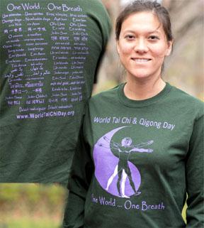 FRONT: "World Tai Chi & Qigong Day" and official motto "One World ... One Breath"
