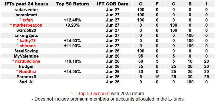Two Top 50 members made IFTs after yesterday's Last Look Report: