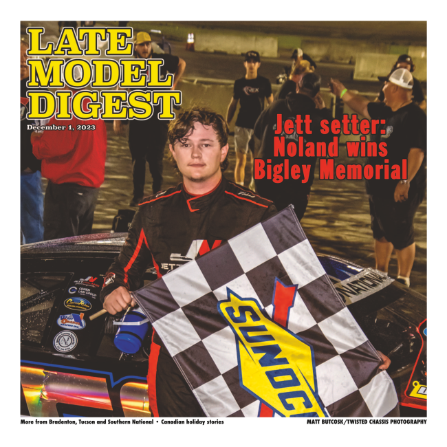 This is a rather loaded Friday Features edition. There was plenty of action over Thanksgiving weekend at Tucson AZ, Kenly NC and Bradenton FL (the latter of which resulted in Jett Noland earning $30,000, pictured on the cover; Matt Butcosk/ Twisted Chassis Photography).