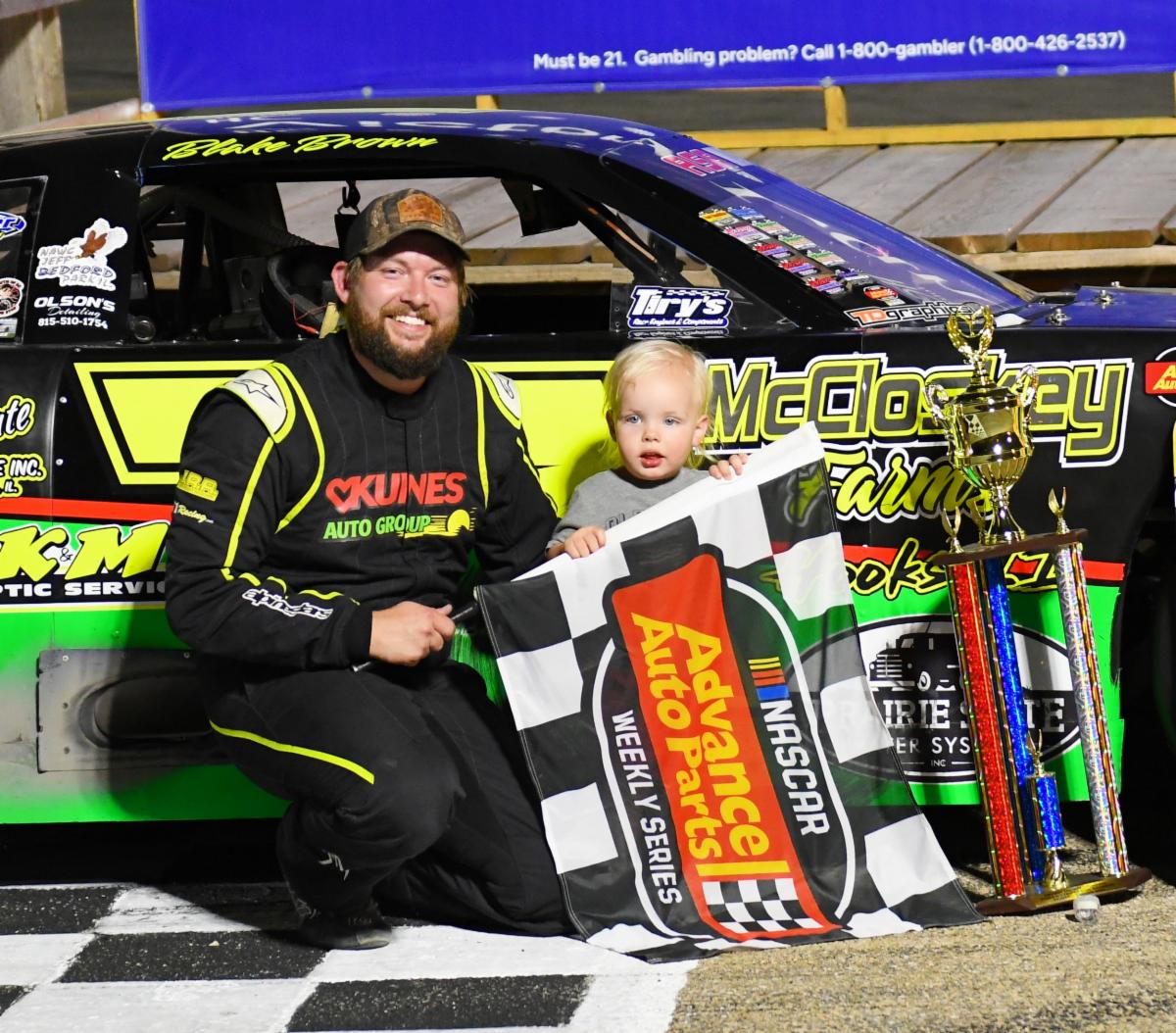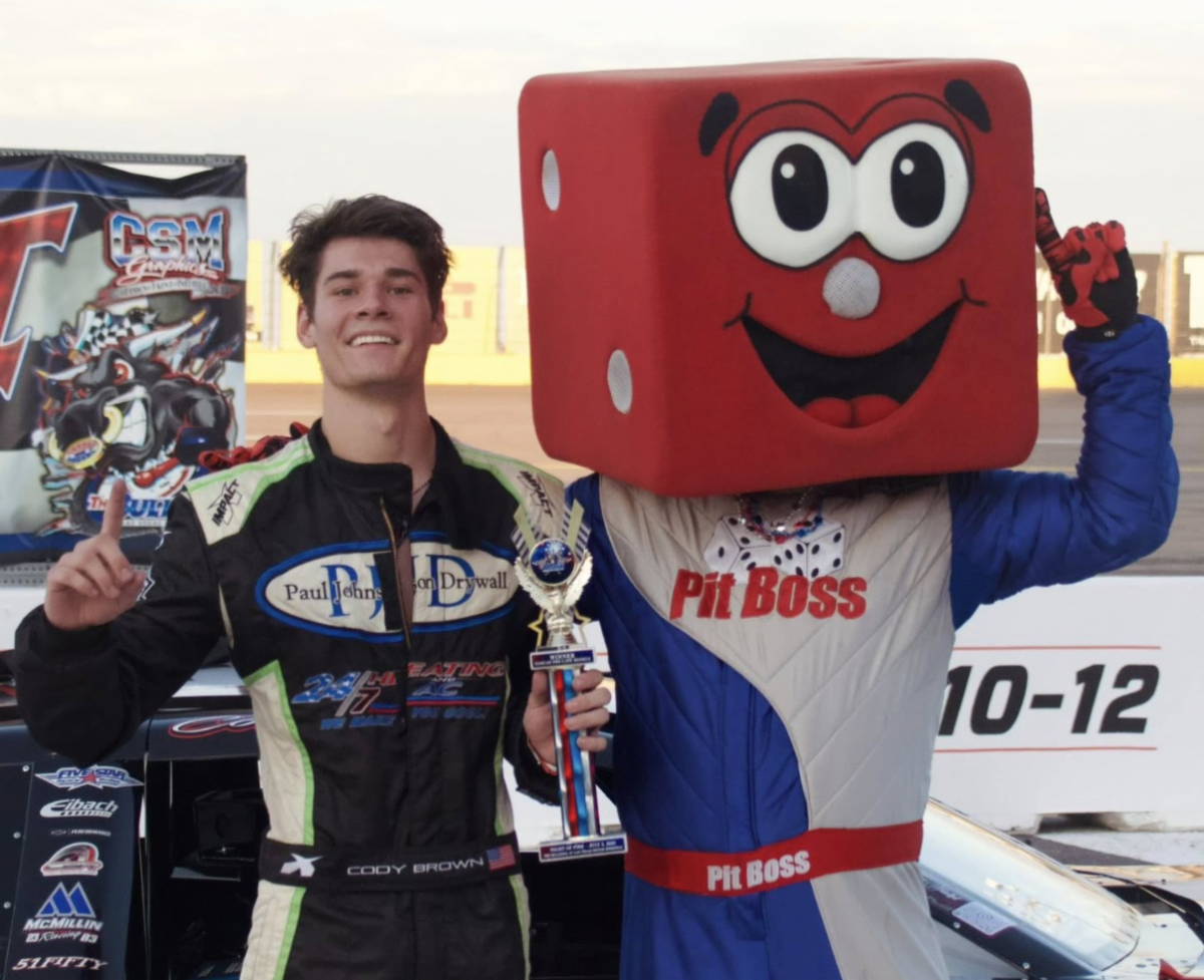 (Photo 14 of Brown and track mascot Pit Boss from Rob Street Racing Photography; this was the first feature of the track’s annual Night of Fire)