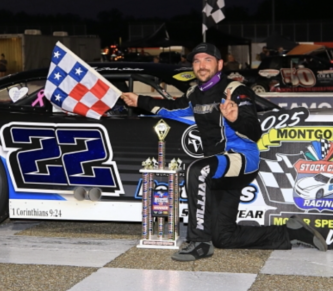 (Photo 9 of Williams, who was making his first Montgomery appearance of the year driving for Anthony Lilla and Jackie McGuire, from David Kranak/ Impact Zone Photos)