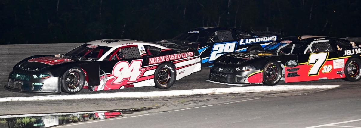 July 3 Late Model: 1. Jordan Sims; 2. Jeremy Van Hook; 3. Jordan Rocchetta; 4. Mike Heinonen; 5. Roddy Bolduc