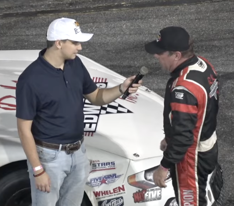(Photo #10 of newly-crowned track champion May’s interview from Speedway Video/ Turnin’ Left Motorsports)