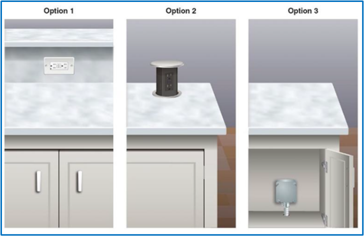 Option 2 - the installation of receptacle outlets within the countertop, or