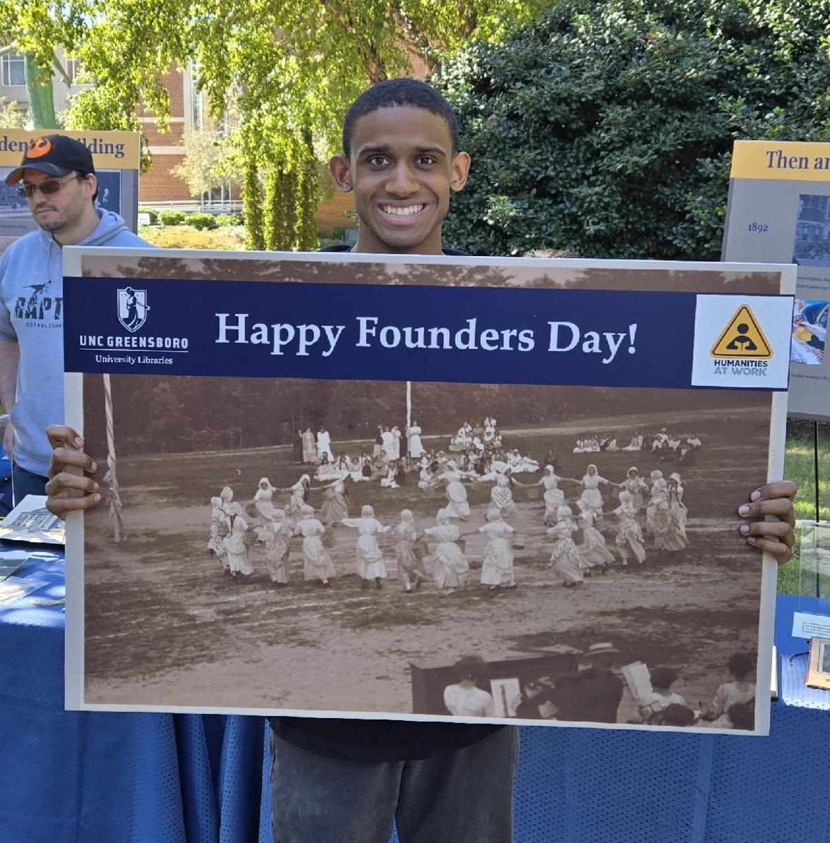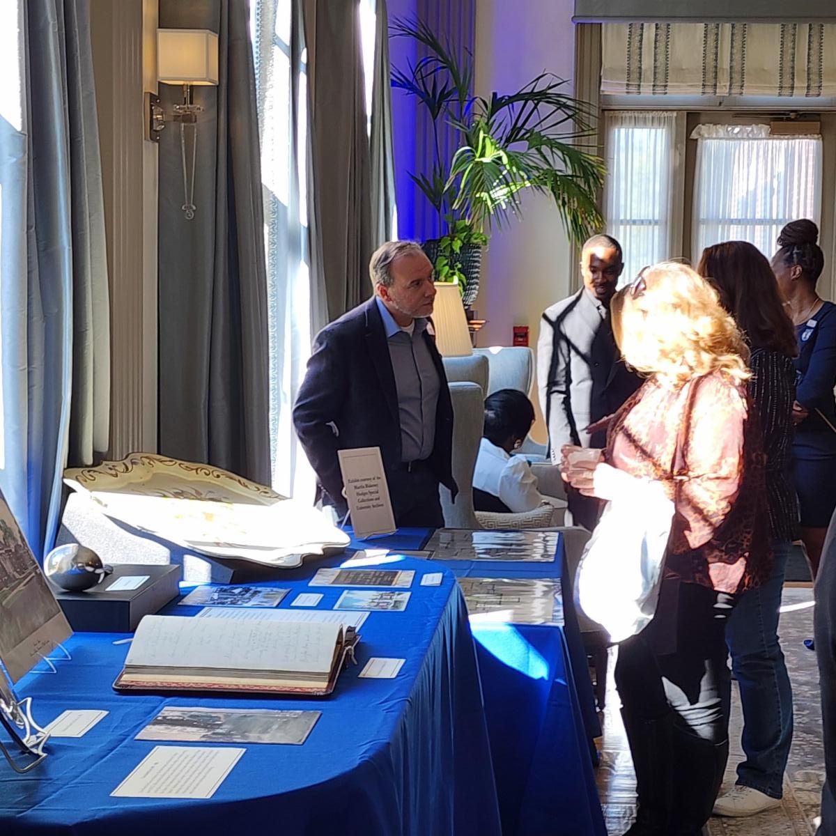 SCUA's Scott Hinshaw and Kathelene McCarty Smith created a display of historic University materials at the dedication ceremony.