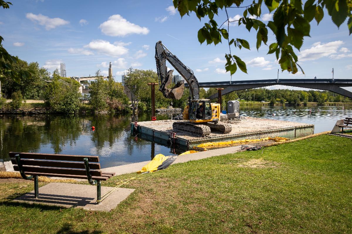 “Not only will this work stabilize West Bank and the Faryon Bridge, but the final design also includes many features that will make campus more open and accessible. The addition of an accessible trail and stairs to the water will enable better access to the river for ceremony and recreation,” said Bruno Bianco, Associate Vice-President, Facilities Management at Trent University. “The armour stone will add much-needed stability to the shoreline, and the finished project will add to the beauty of the Symons campus and the Otonabee River.”