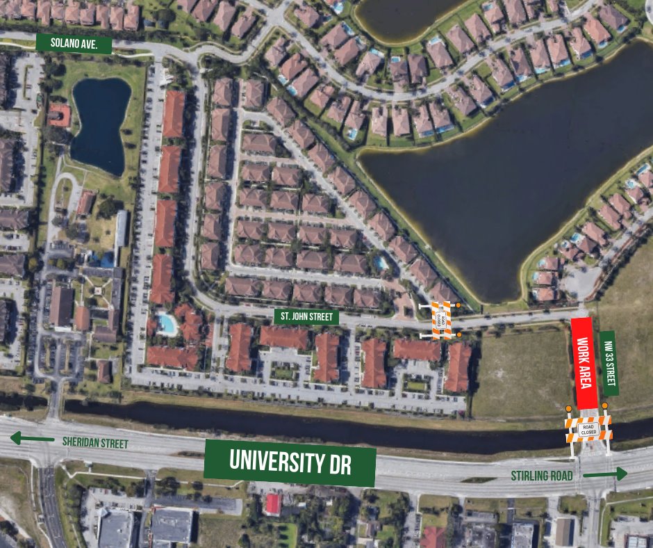Cooper City residents, especially residents of the Monterra community, should be aware of an upcoming street closure on Monday, September 13. Advanced warning signs are providing notice about the upcoming closure that will affect NW 33 Street and a portion of St. John Street.