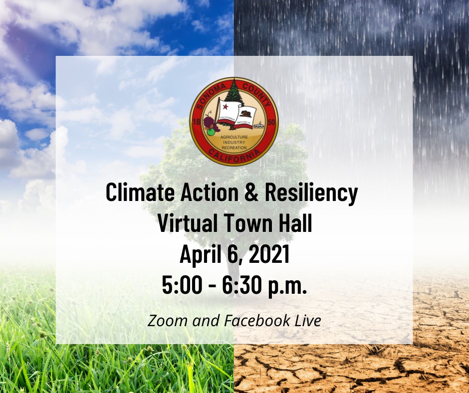 Join us for the County of Sonoma's Climate Action & Resiliency Virtual Town Hall on Tuesday, April 6th at 5:00 p.m.