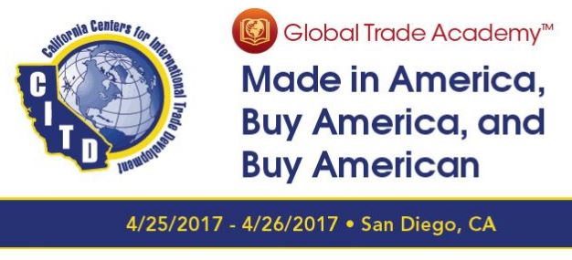 The San Diego CITD sponsored the Amber Road Training, "Made in America, Buy America, or Buy American - Qualify your Goods and Increase Sales. The training was taught by trade lawyer and licensed customs broker, Robin Grover, and licensed customs broker and Certified Classification Specialist, Suzanne M. Richer. Participants in the training came from all over the U.S. and learned the many requirements and standards for their company's products to qualify as "Made in America" and their ability to participate in U.S. Government procurement programs as well the different agencies they would need to qualify through.