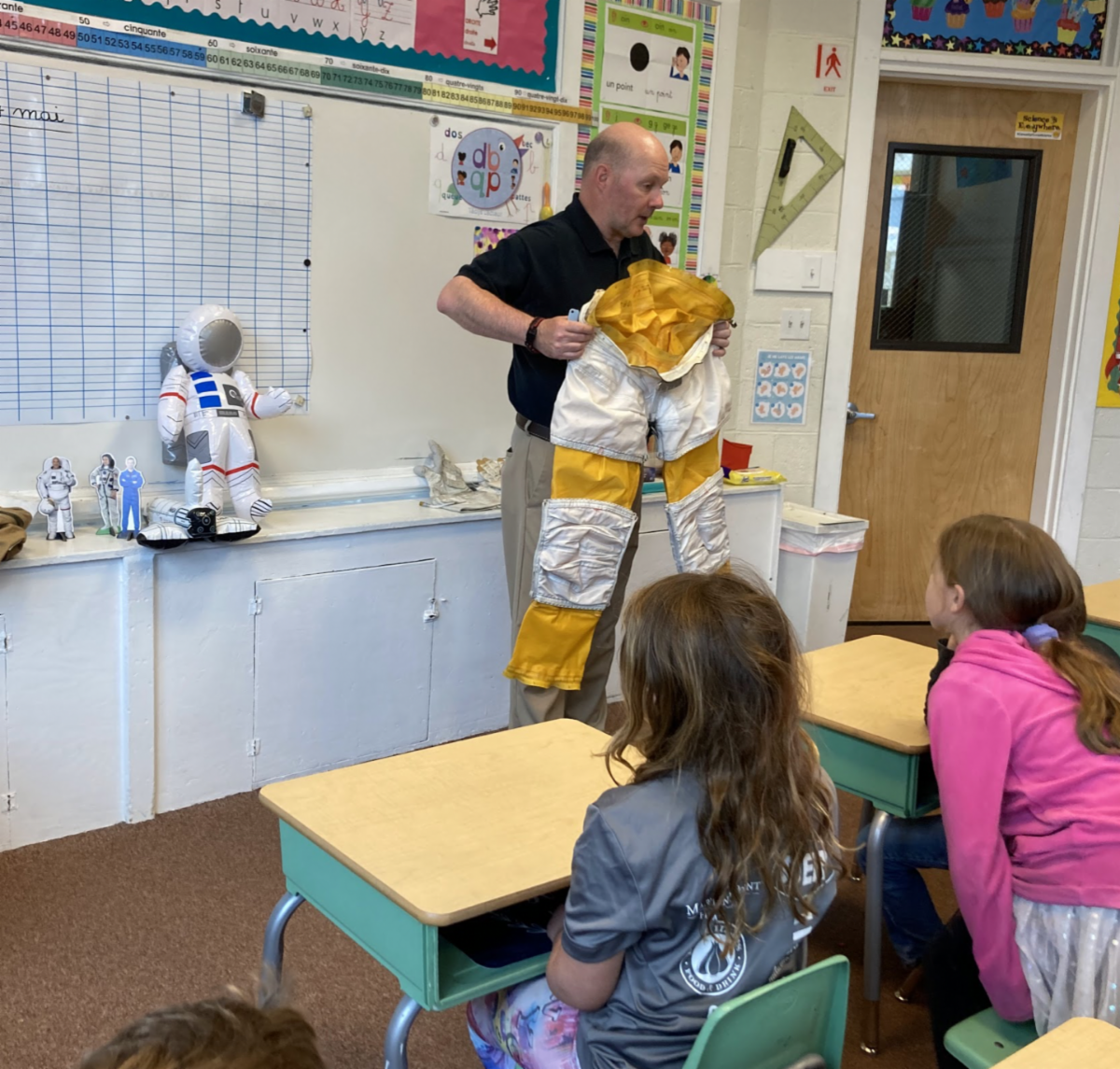 What a treat to have aerospace educator Brian Ewenson visit the upper-grade classes last week to share his experiences with NASA and studying space (in a presentation held entirely in French)! Space Day in Maine is always a treat and we are so grateful to the educators who continue to include EFDM in this annual celebration of learning.