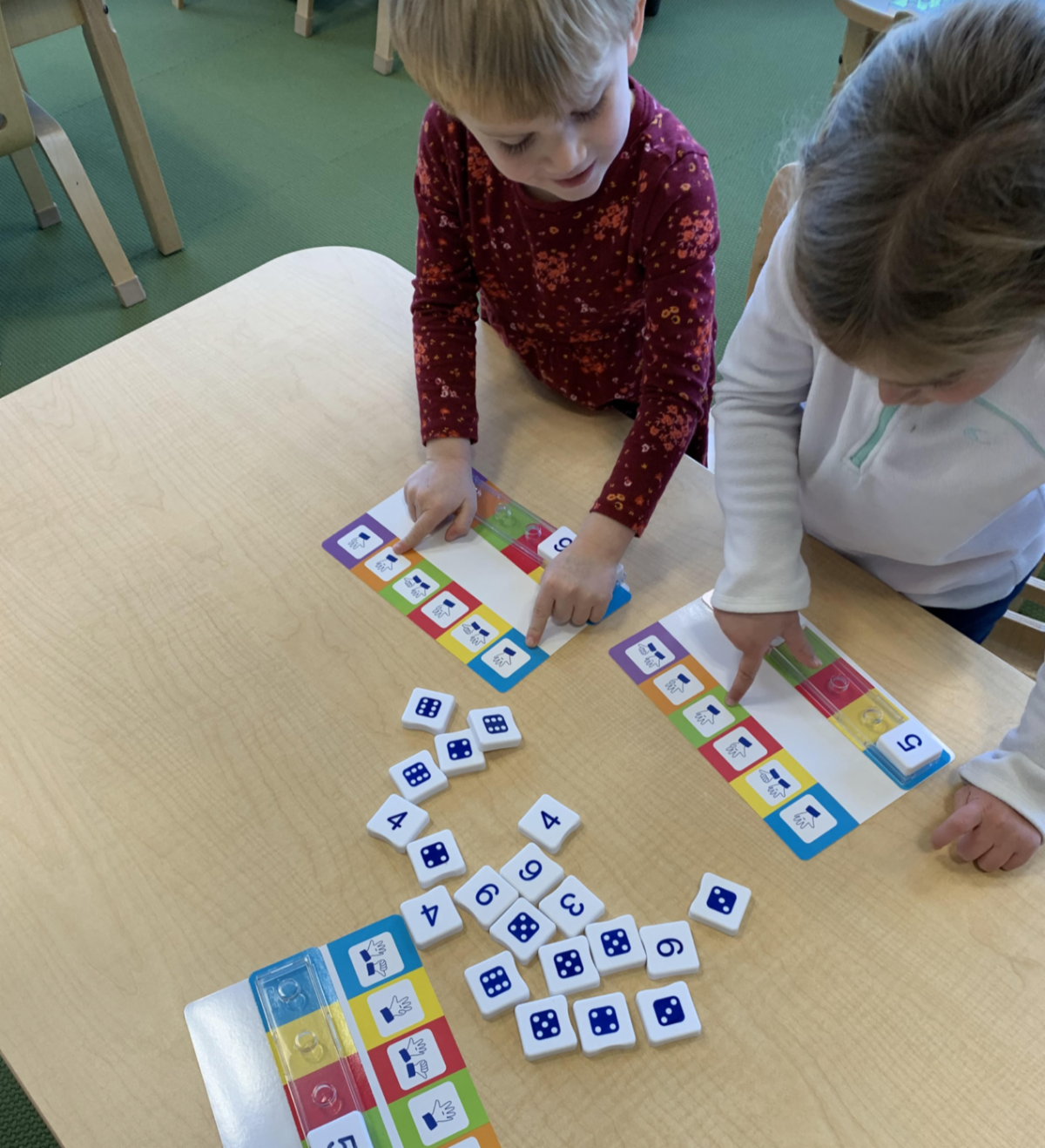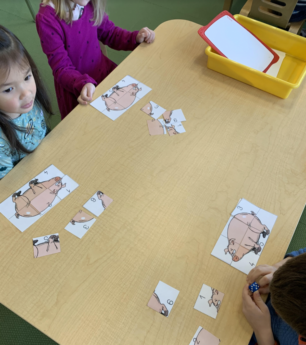 The Moyenne Section continues to play their way through some big learning concepts! Students are getting lots of practice recognizing numbers in various forms, whether in written numerals, on a dice, or counting on fingers. Their morning workshops are filled with math games these days! | |
