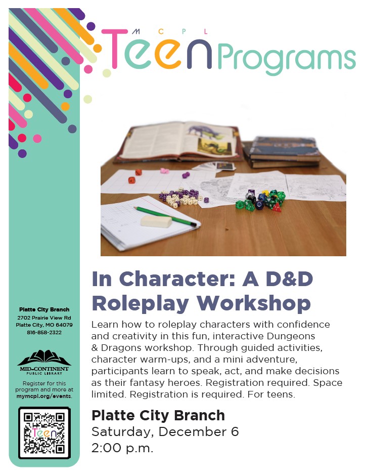 Mid-Continent Public Library's Platte City Branch is hosting various teen and kids book groups and programs in January and February. Check them out!