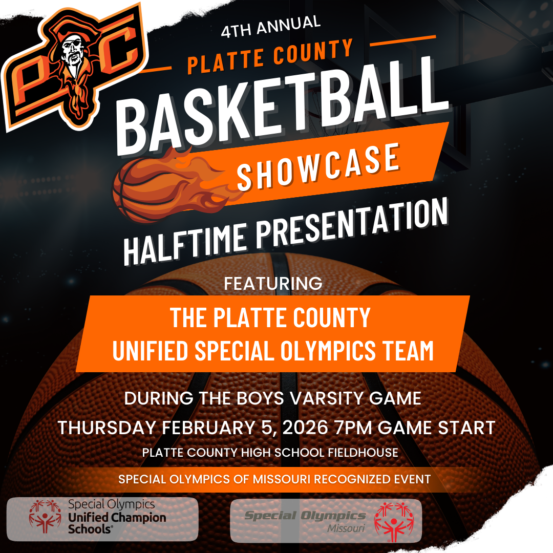 Join us for a Basketball Showcase featuring the Platte County Special Olympics Team, during halftime of the boys varsity game on February 5! See flier for details.