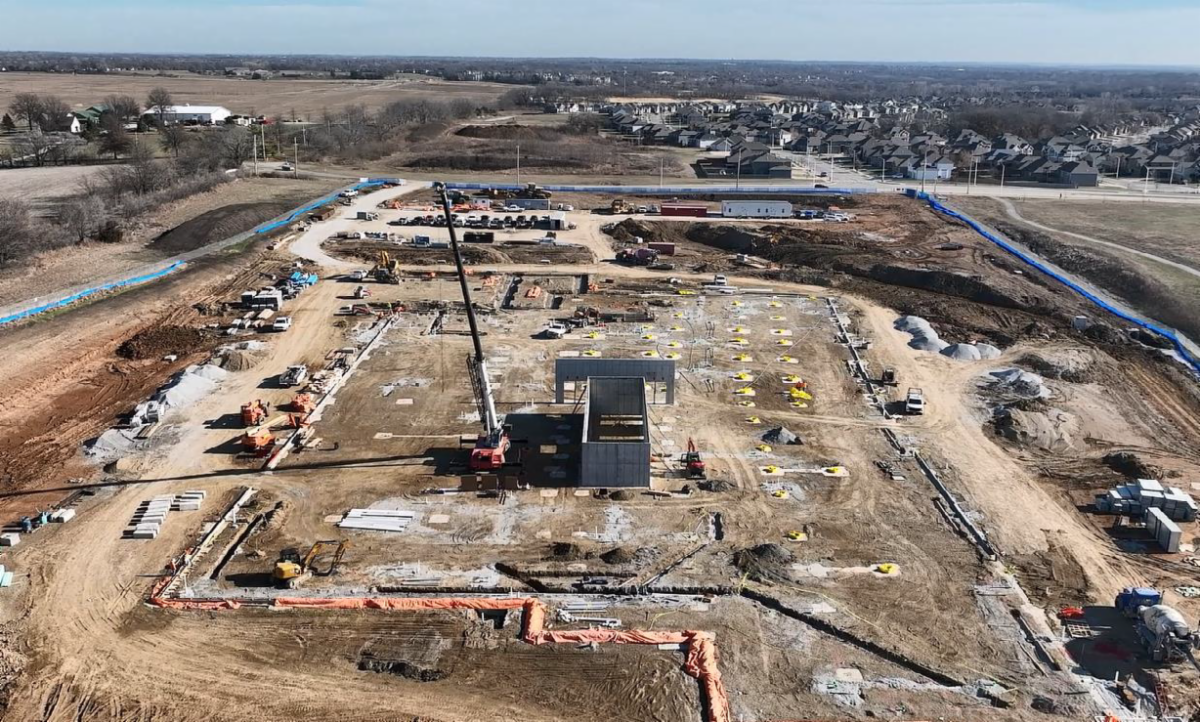 At the NWDC project site, cast-in-place concrete walls for the east storm shelter and concrete slab-on-grade throughout the building is currently being poured. Rough grading around the project site is finishing up, and structural steel is set to start next week.