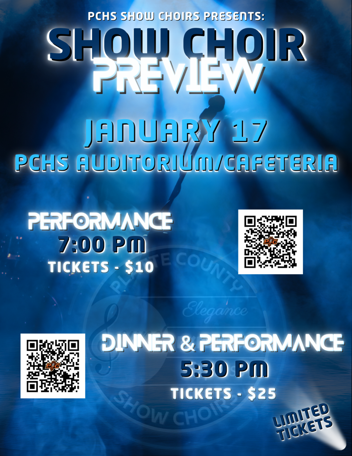 You are invited to the PCHS Show Choir Preview on January 17! The show will feature all 3 PCHS Show Choirs. Limited tickets available: