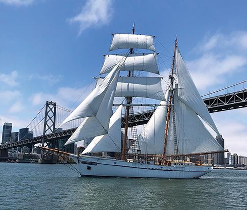 The vessel is inspired by renowned Bay Area ship builder, Matthew Turner, and his design, Galilee, which came to rest at the foot of Napa Street in Sausalito. Her stern is permanently on display at Fort Mason.