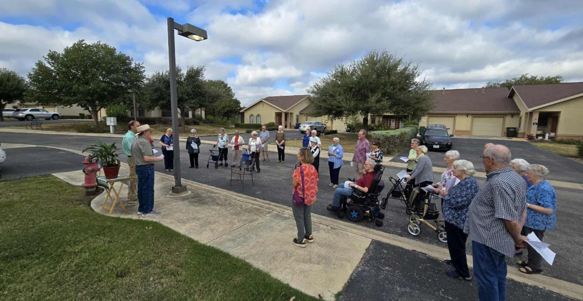 Laudato Si presenter, Maurice Lange, told stories of his youth, sharing his childhood memories of treasured outdoor activities with his family. Several times he bent his knee to illustrate his size when he was a little boy. Such movements were visual messages encouraging us also to return to the earth. So impressed, that evening Bill and I went out to dinner on a restaurant patio nestled under live oak trees and a spoon’s throw from undeveloped natural brush.