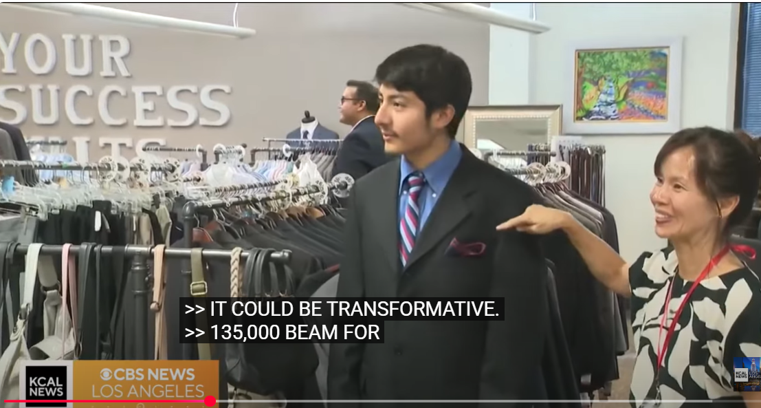 Andy Robles, Executive Director of Simon Scholars and Bonni Pomush, CEO of Working Wardrobes were featured on KCAL News for their collaborative partnership.