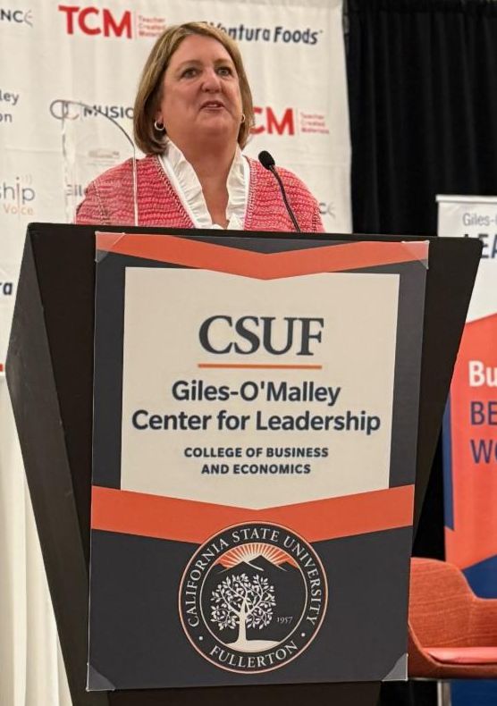 Julie Hudash, Founder and CEO of Team Kids, was honored as one of the visionary leaders shaping a better future through courageous leadership. Guided by an unwavering sense of mission and purpose, Julie received the CSUF College of Business and Economics' 2025 Excellence in Executive Leadership Award for Culture Change at the 14th Annual Giles-O'Malley Center for Leadership Awards.