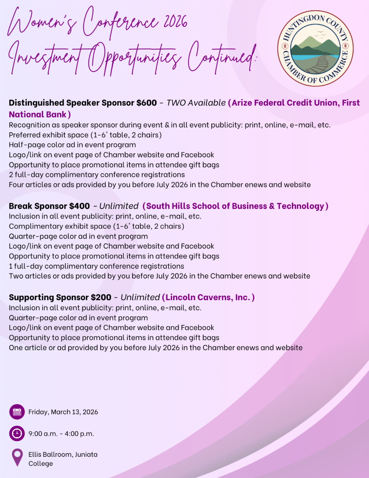 As we prepare for this exciting event, we are seeking businesses and organizations interested in investing in the professional development of women. This conference will bring together women from across our community for a full day of inspiration, learning, and meaningful connection - and your support can help make a lasting impact.