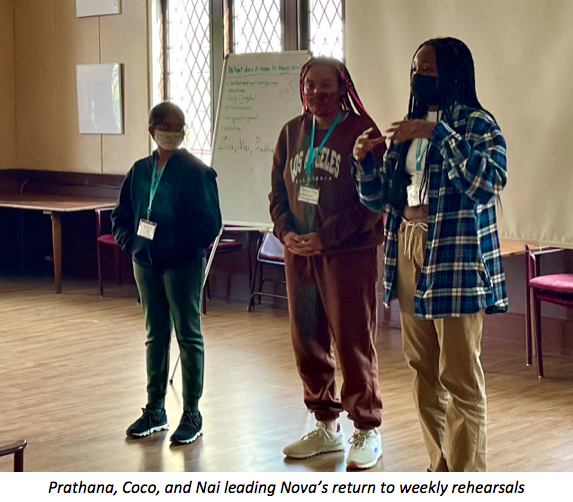 After a year and a half of distance learning, our Nova singers came together last week to rehearse in person for the first time since March 12, 2020. It was an incredible feeling for all of us to be “unmuted” at last, singing together in the same room, despite the challenges of rehearsing with masks on, distanced apart with the doors open, and the emotional stress we all feel during this Delta surge. Our Leadership Team bravely took charge to make sure returning singers and our 12 new students felt safe, welcome and motivated to do their best work.