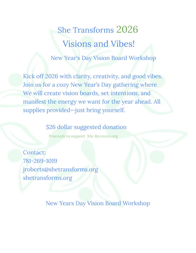 Join Jen Roberts of She Transforms to Kick off 2026 with clarity, creativity, and good vibes Join us for a cozy New Year’s Day gathering where we will create vision boards, set intentions, and manifest the energy we want for the year ahead. All supplies provided—just bring yourself.