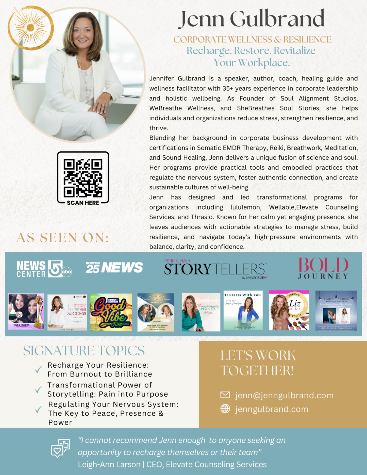 If you’re seeking community, collaboration, and a heart-centered environment to serve your clients, reach out to Jenn Gulbrand.