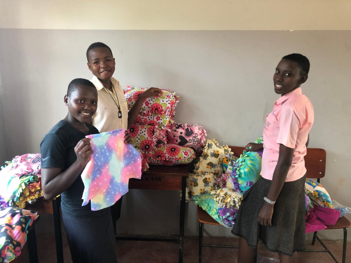 | The high school girls used the donated fabric to make pillows for themselves and as gifts for others |