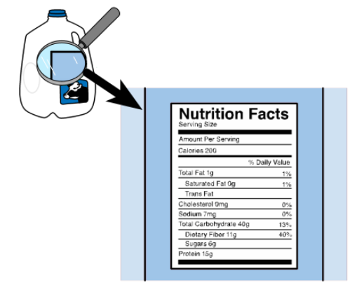 Milk's nutrition fact labels can be found by purchasing the different kinds of milk, looking at them while at the grocery store, or searching online.