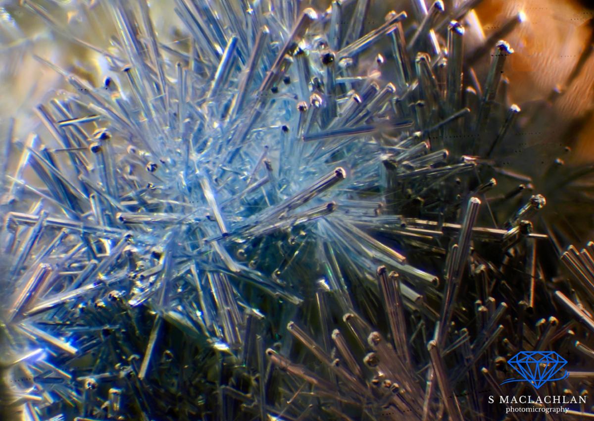 The image below, Dumortierite in quartz. This is a stack of 26 images. Taken at 80X zoom.