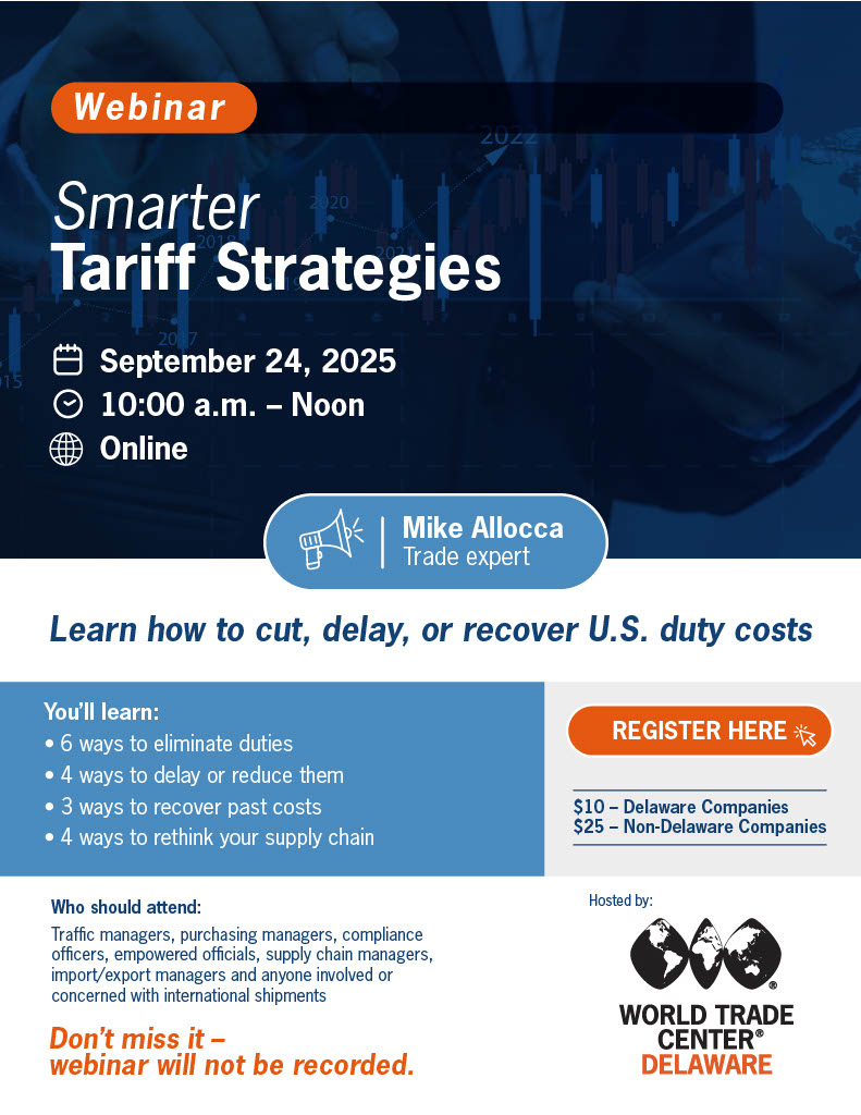 As always, World Trade Center Delaware is here to support your success in the global marketplace.
