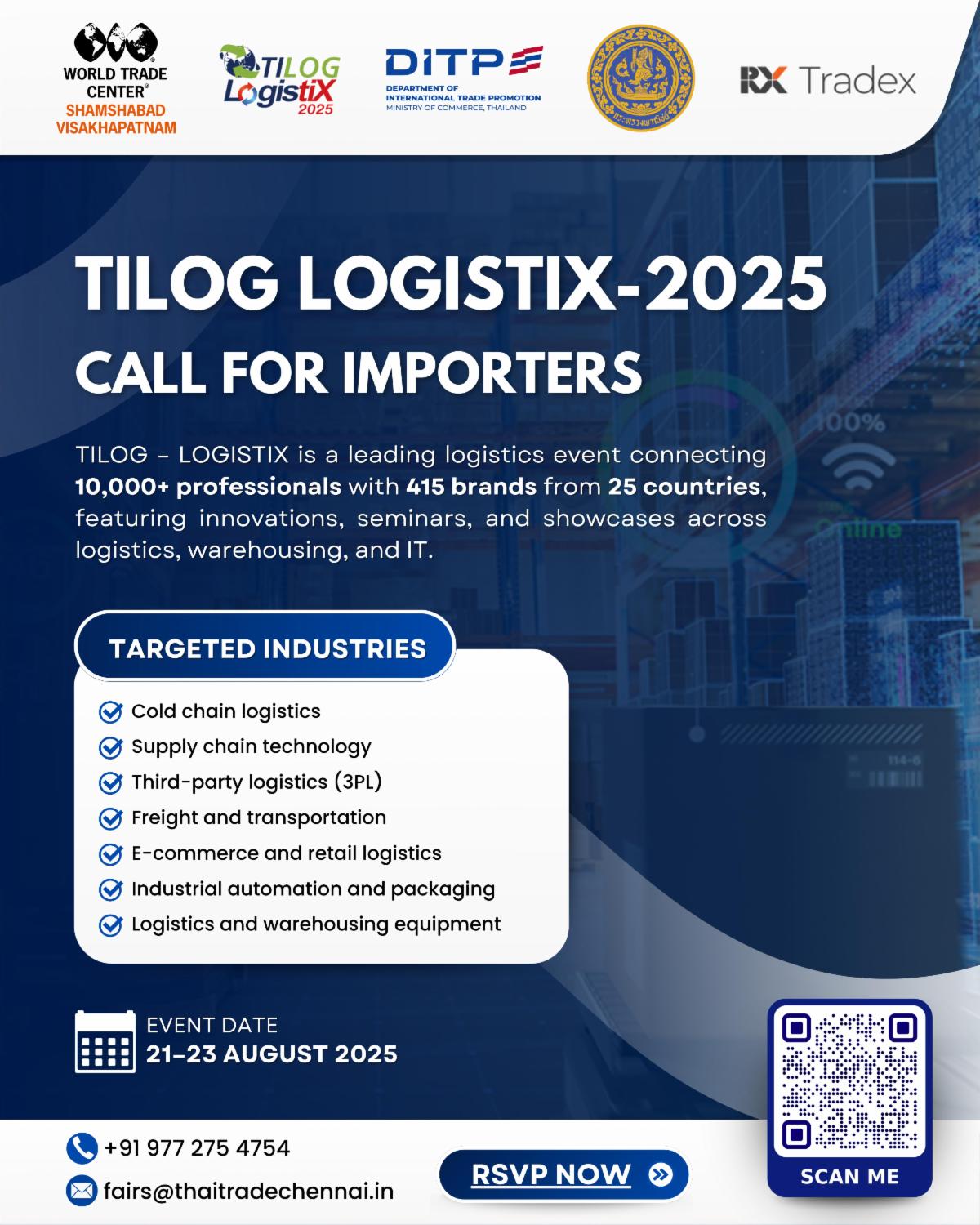 TILOG LOGISTIX 2025: Call for Importers, Bangkok, Thailand; WTC Shamshabad & Visakhapatnam