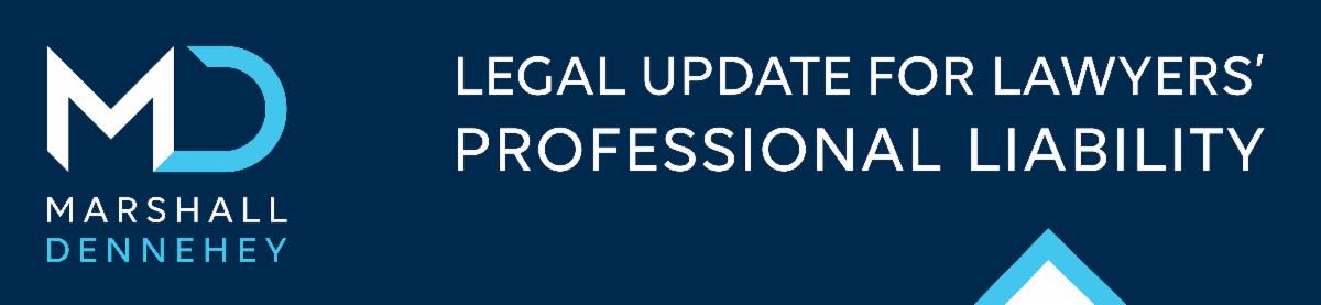 | | Legal Update for Lawyers' Professional Liability - April 2025 has been prepared for our readers by Marshall Dennehey. It is solely intended to provide information on recent legal developments and is not intended to provide legal advice for a specific situation or to create an attorney-client relationship. We welcome the opportunity to provide such legal assistance as you require on this and other subjects. If you receive the alerts in error, please send a note tamontemuro@mdwcg.com. ATTORNEY ADVERTISING pursuant to New York RPC 7.1. © 2025 Marshall Dennehey. All Rights Reserved. | | | | |
