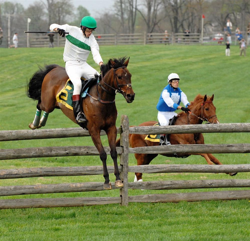 Stewart Strawbridge and The Bruce at the 13th fence of the 2007 Maryland Hunt Cup. The Bruce was owned and ridden by Strawbridge, and trained by Sanna Neilson.