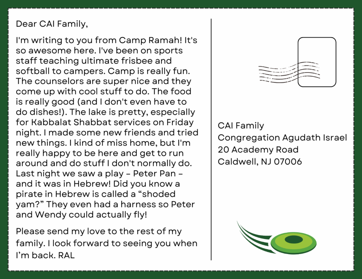 I look forward to sharing more reflections with you as I continue to unpack my time at camp. For now, thank you for the opportunity to have this experience, and I hope you get a sense of how special the camp community is and the ways in which I was able to contribute to making it so.