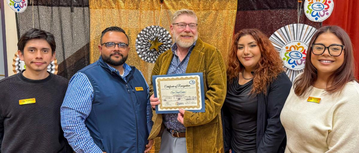 | | (left) Leonardo Isidro, Alfonso Morelos, Rob Rapp, Teresa Alvarez, and Katia Lainez Gutierrez | | Sun Street Centers’ Prevention (STEPS) and Road to Success Program was honored June 9th with a Heart of the Village Award from Community Schools of the Monterey Peninsula Unified School District. Road to Success serves Monterey County youth ages 12-18, with a priority focus on first-time criminal offenders, youth leaving detention, and those at risk of school failure or expulsion. The 3-6 month program includes 8-weeks of Life Skills Training, case management, individual youth diversion plans, substance use intervention and education, individual counseling, and the opportunity for youth to earn community service hours. The STEPS program is a peer-led, afterschool leadership initiative for high school students that offers community service hours, job opportunities, life skills development, and education on substance use. | |
