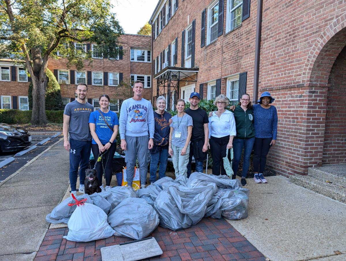 Clockwise from the top: Frederick Courts Condominium Veteran's Day of Service cleanup around the property and Bailey's Branch park, Thomas Jefferson Middle School students worked on three projects to learn about sustainability, Giving Tuesday Canvassing for Tree Equity Program and litter cleanup with Amazon, Mastercard, TreeStewards and UUCA. | |