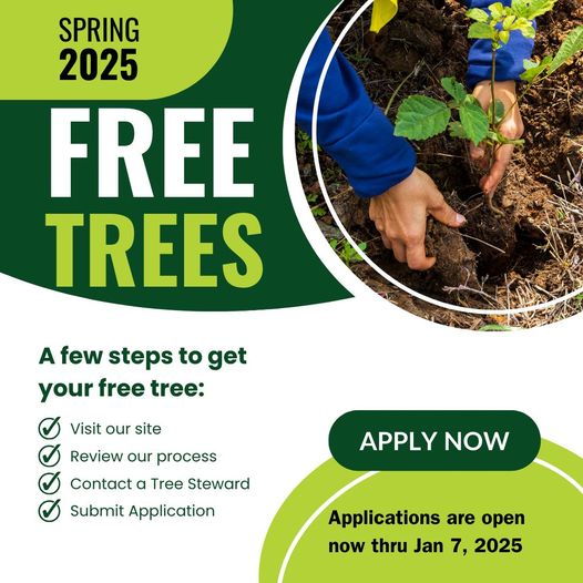 Recognizing that we don’t know if we will be able to provide the opportunity to apply for trees to be planted in the fall of 2025, we strongly encourage everyone interested in planting trees in 2025 to apply now for trees to be planted in the spring of 2025. For anyone applying to get trees in the spring of 2025 to meet the requirements of the Stormwater Utility Credit Program, please make sure to indicate this on your application. If funding is secured, there is the possibility that there will only be one opportunity for applying for trees next fiscal year: the spring of 2026.