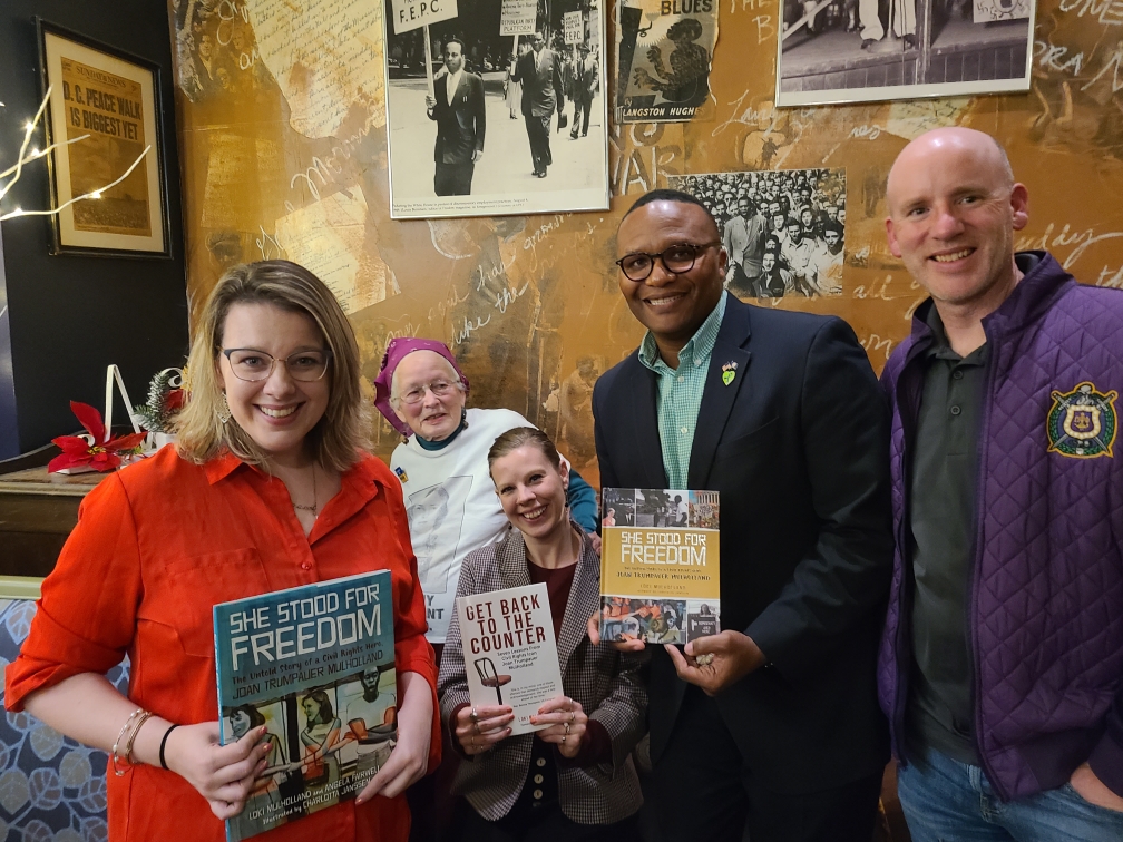 On November 19, EcoAction Arlington was honored to host a talk with Joan Trumpauer Mulholland at Busboys and Poets in Shirlington. Joan Trumpauer Mulholland participated in over 50 sit-ins and demonstrations including the Freedom Rides, the Jackson Woolworth’s Sit-in, the March on Washington, the Meredith March and the Selma to Montgomery March. The goal of The Joan Trumpauer Mulholland Foundation is to educate people about the Civil Rights Movement and how they can make a difference.