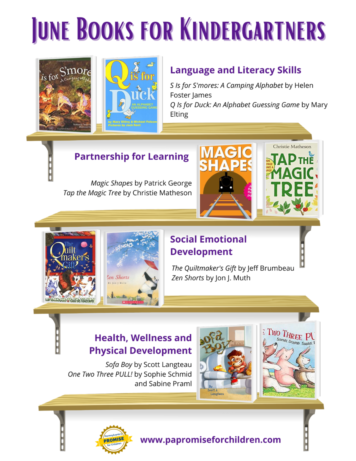 Make a short video of your kindergartner reading or giving a book review of one of the books on the list. What was their favorite part of the book? Share the video with family and friends. Tag PA's Promise for Children on Facebook, Twitter or Instagram!