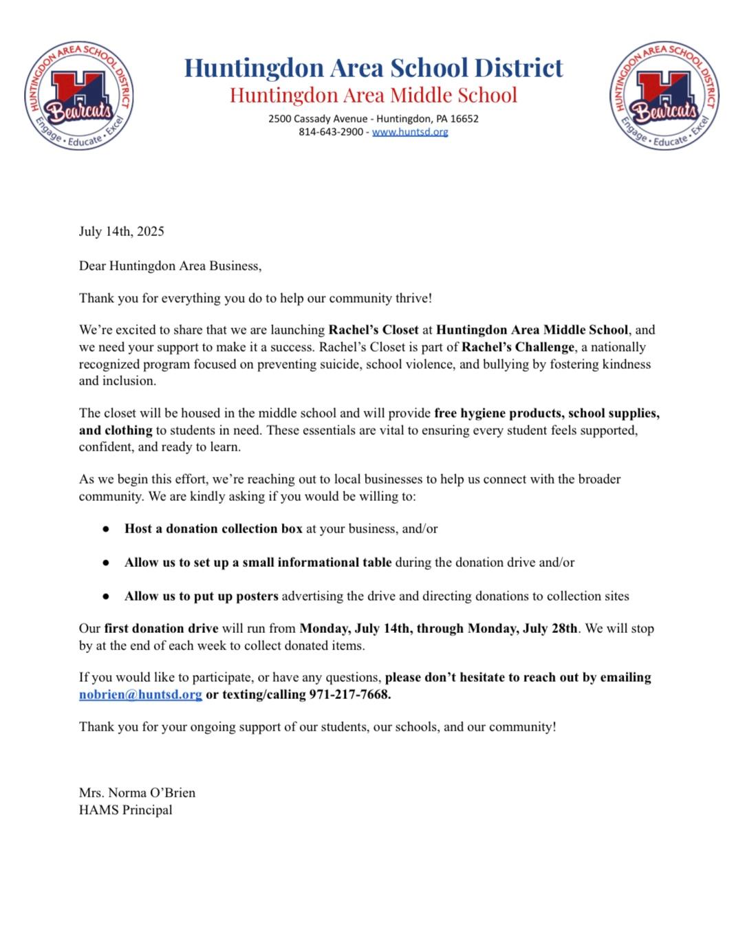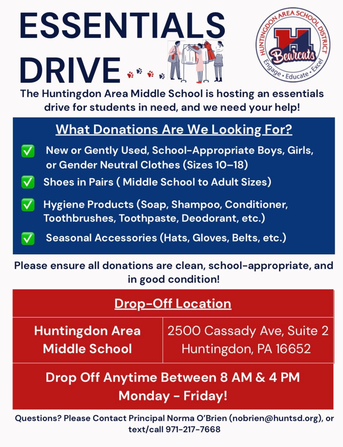 The Huntingdon County Chamber of Commerce is proud to be a host site for this Essentials Drive! We encourage you to help support this important cause as well!