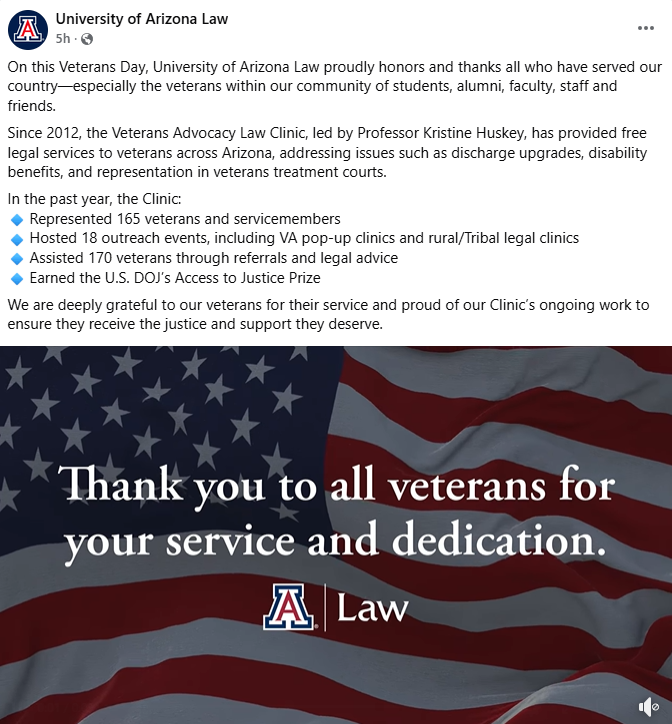 This week, we recognize and honor the veterans in our community and share highlights from the work of the Veterans Advocacy Law Clinic.