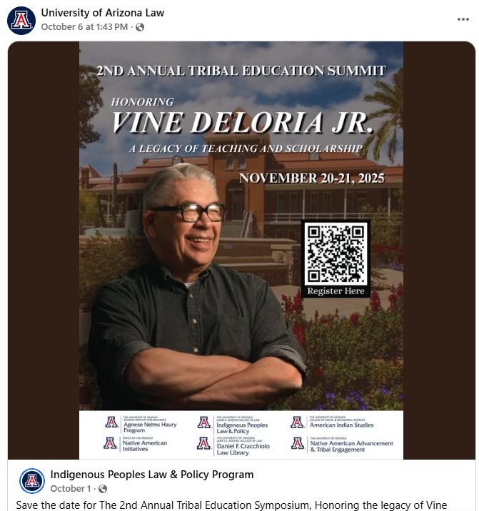 The IPLP Program will be co-hosting the 2nd Annual Tribal Education Symposium, honoring the legacy of Vine Deloria, Jr., November 20–21.