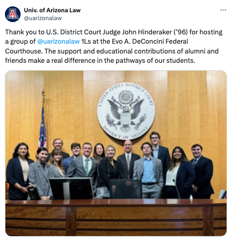 I started my legal career as a Corrections Officer with the Pima County Sheriff’s Department. I was promoted to an administrative position writing policy and procedure for the Pima County Sheriff’s Department Corrections Bureau. My wife told me about a new degree in law that the University of Arizona was offering to undergrads. I changed degree paths and schools so that I could learn about the law and be better equipped to perform the functions of my job. I fell in love with the law and began to look at how the world operated from a very different point of view. I eventually left the Pima County Sheriff’s Department and chose to continue pursuing a career practicing law.