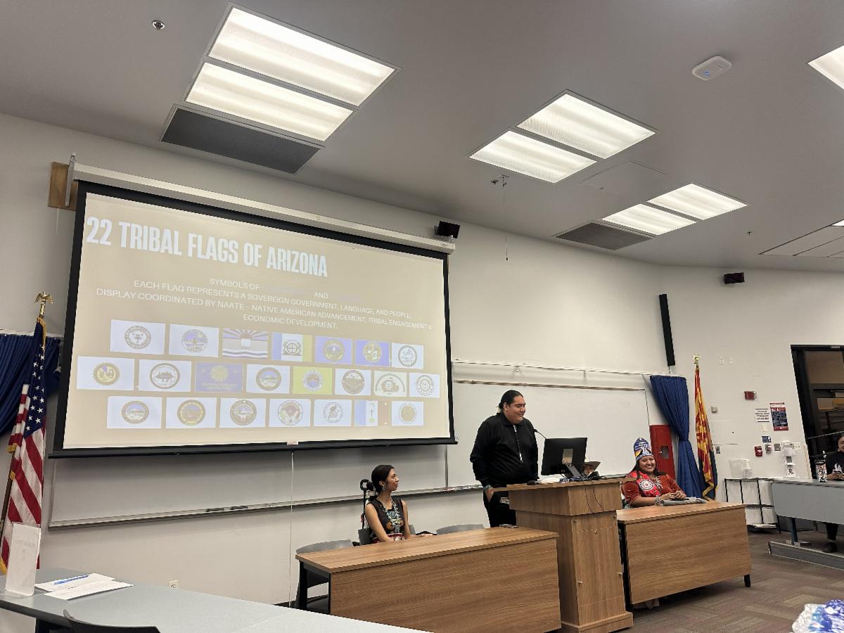 On November 3, University of Arizona Law’s Native and Indigenous Law Students Association (NILSA), Indigenous Peoples Law and Policy (IPLP) Program and Daniel F. Cracchiolo Law Library co-hosted the inaugural display of the Rotating Tribal Flags Initiative in partnership with the University of Arizona Office of Native American Advancement & Tribal Engagement.