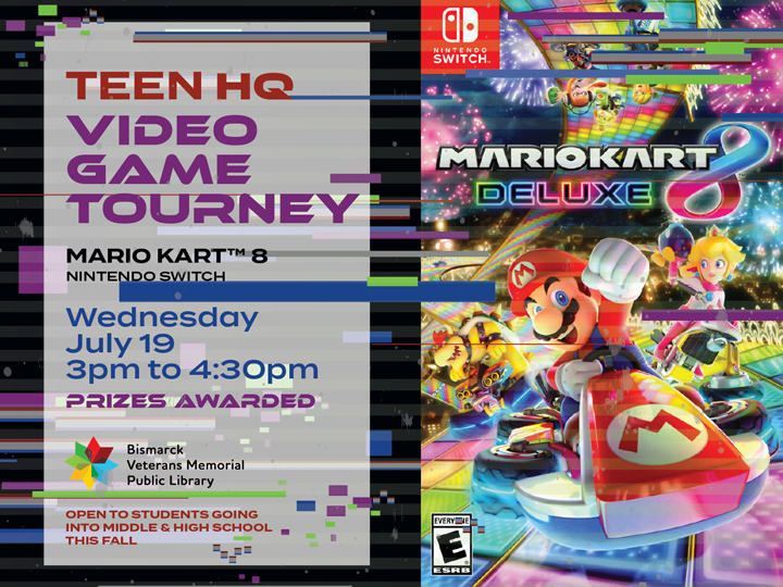 Show off your skills Wednesday, July 19th in our second video game tournament of the summer! This event is free and open to students who will be attending middle or high school this fall. This month’s game is Mario Kart 8 on Nintendo Switch!